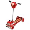 Your small preschooler will admire coming to the rescue on his police car scooter! Safe and fun to ride, it has a regular 4-wheel design with clear mega wheels, fully functional steering handlebars, reflector lights and nonslip deck. Innovative "lean and steer" technology makes it simple to control and prevents tipping over when turning corners. Turn the handle grip for realistic emergency sounds and flashing lights! Instructions included. Imported. 28Lx26Lx15W".